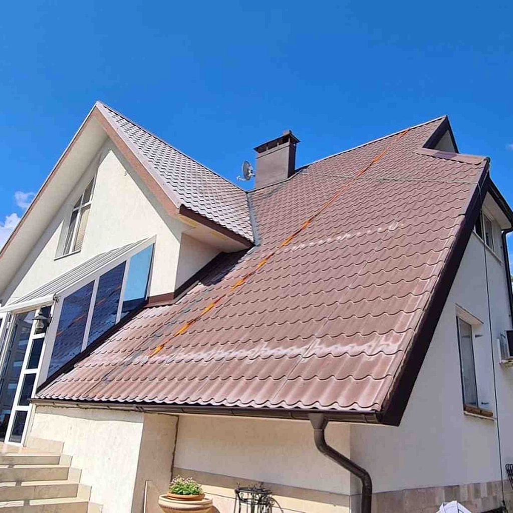 • Покраска кровли 2 раза в сутки. Это окончательная стадия наших работ. После выполнения грунтовки, следует дождаться ее полного высыхания, а после приступать к покраске в 2 подхода. Кроме того, выдерживается определенный промежуток времени для высыхания 1-го слоя. Материалом для окрашивания будет краска, которая предназначена специально для металлических поверхностей. Одна из наиболее востребованных красок ПФ-021. Цветовая гамма подбирается с учетом требований и пожеланий клиента, или мы отталкиваемся от цвета прежнего покрытия.